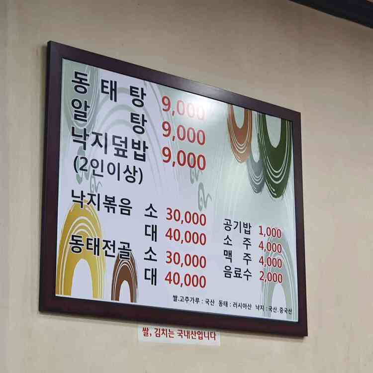 - 특징: 시원하고 깊은 국물 맛이 특징이며, 동태살과 내장이 신선하게 제공됩니다. 겨울철 보양식으로 적합합니다.
