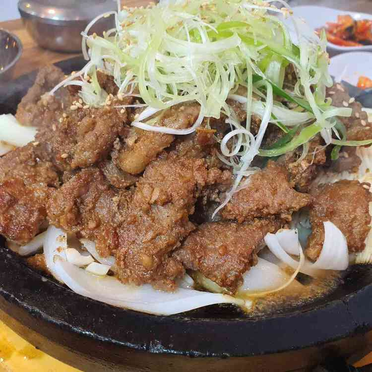 이곳의 대표 메뉴는 돌판 직화 요리입니다. 특히, 다음 세 가지 메뉴가 인기입니다: