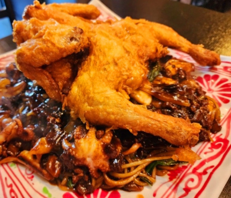 - 바삭바삭한 통닭과 쫄깃한 짜장면의 조화.