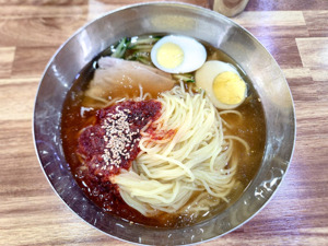 - 시원하고 슴슴한 육수와 쫄깃한 면발이 조화를 이루는 여름철 인기 메뉴.